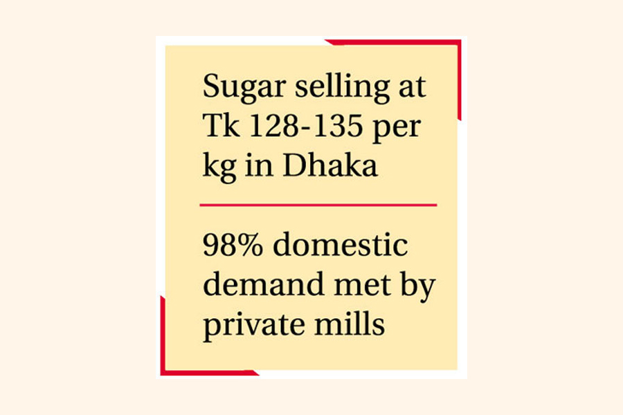 Sugar was selling at Tk 128-135 per kg in the Dhaka's kitchen markets, according to the TCB.