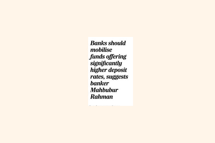 Mr. Rahman suggests that banks should mobilise funds by offering significantly higher deposit rates to attract clients.
