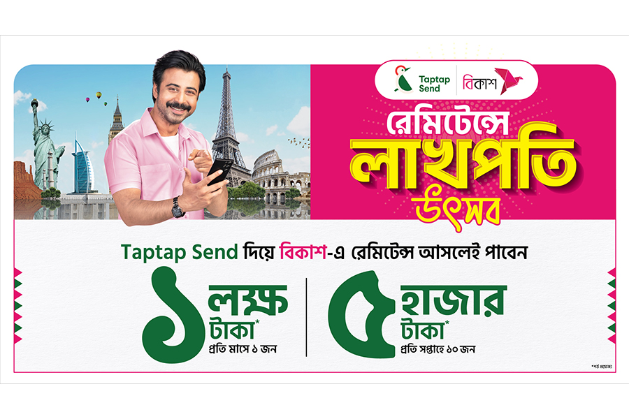 Receiving highest amount of remittances directly to bKash account through ‘Taptap Send’, an international money transfer organisation (MTO), three remittance receivers each per month can get bonus of Tk 0.1 million (Tk 1 lakh), according to a press release Tuesday.