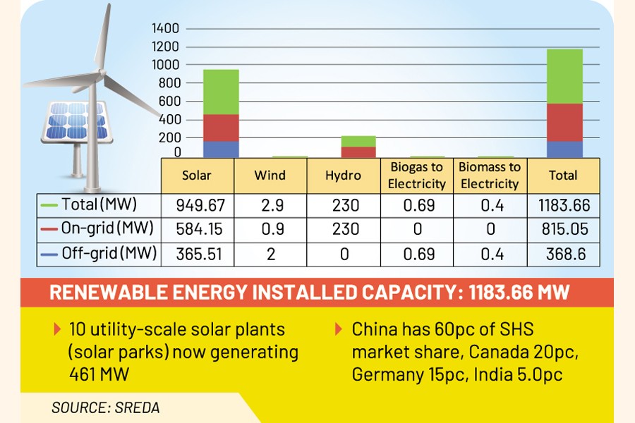 Dipal Chandra Barua, founder & chairman of Bright Green Energy Foundation and former president of the Bangladesh Solar and Renewable Energy Association (BSREA), said China's technology, including panels, inverters, cables, and others, holds over 80 per cent market share in the solar sector.