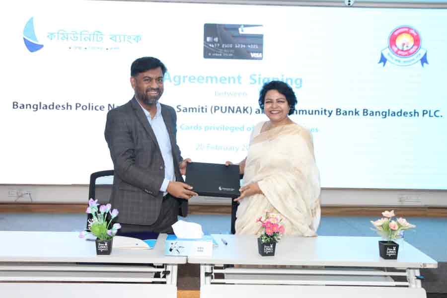 An agreement was signed between Community Bank Bangladesh PLC and Bangladesh Police Naree Kalyan Samiti-PUNAK regarding preferential credit card offers and services.