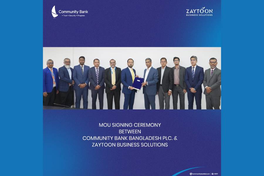 Community Bank Bangladesh PLC and Zaytoon Fintech Limited have entered into a strategic partnership to deliver integrated digital financial solutions, reinforcing their shared commitment to advancing financial inclusion across Bangladesh.
