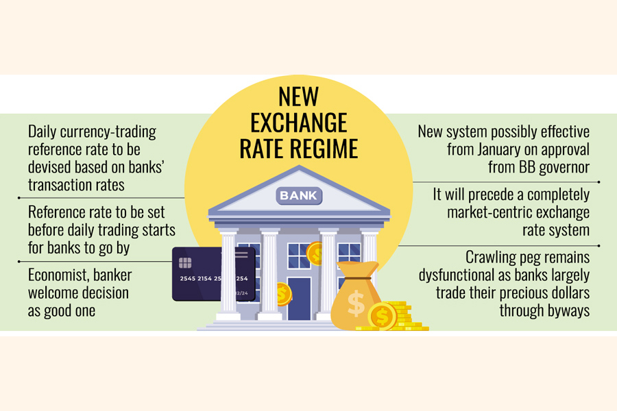 Following recommendation from the International Monetary Fund (IMF) as part of a US$4.7-billion lending package to stabilise Bangladesh's macroeconomic situation, the banking regulator introduced the much-touted crawling-peg system for interim period before transiting into fully market-driven exchange rate since June 2024.