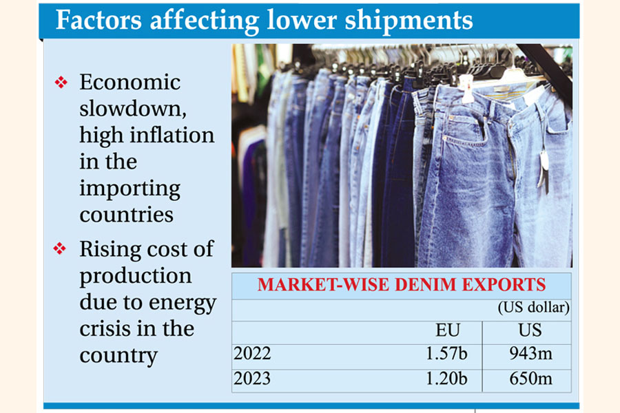 Denim exports to the US market fetched Bangladesh $649.96 million in 2023 calendar year -- down from $942.96 million in 2022, according to OTEXA, a body under the US Department of Commerce.