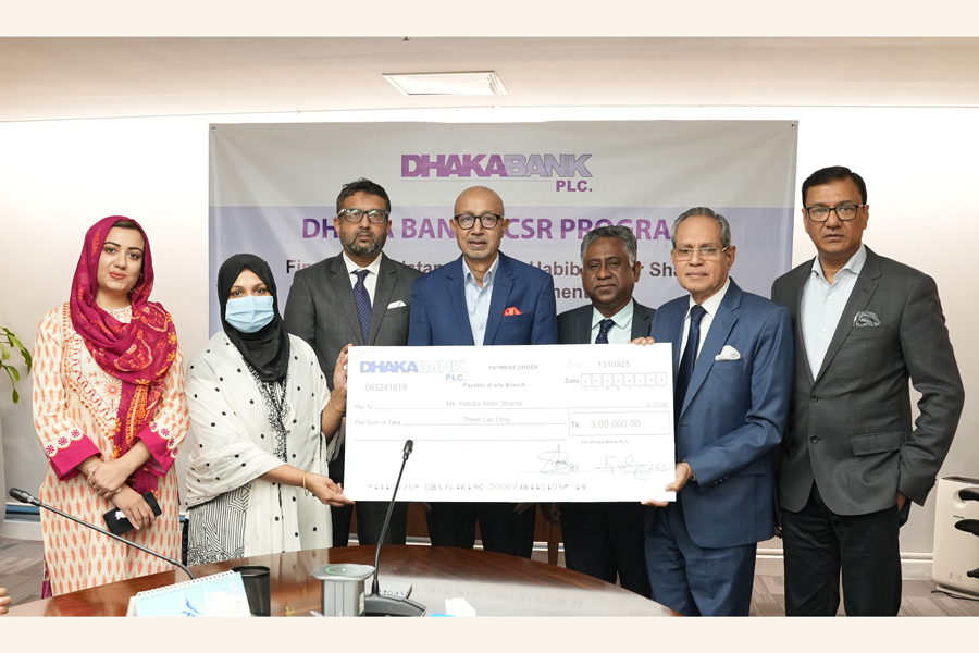Emranul Huq, managing director and CEO of Dhaka Bank, handed over the donation cheque to Ms Shanta at a an informal program held in the head office of the bank, according to a press release.