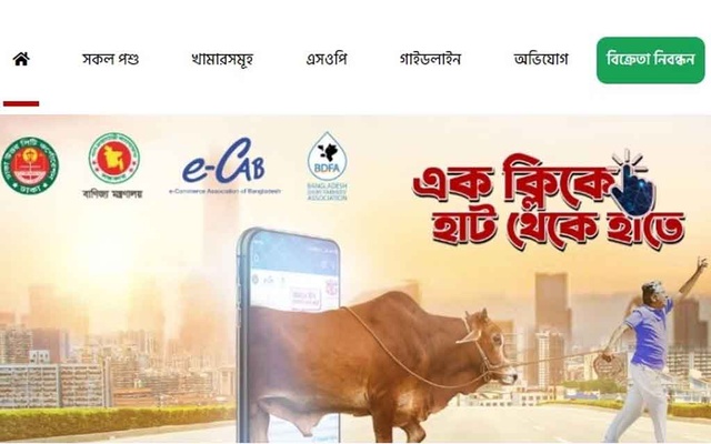 The online sale of sacrificial animals started under the management of the E-Commerce Association of Bangladesh (ECAB) with technical support from the government's Aspire to Innovate (A2I) project's E-Shop. The Directorate of Livestock and local-level cattle suppliers are also connected to the platform.
