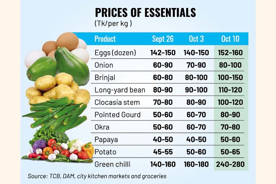 Incessant rains across the country in early October have led to further increases in the prices of summer vegetables. Besides, eggs, potatoes and onions -- which were already in the spotlight -- saw further hikes, putting additional strain on people belonging to low- and middle-income brackets.