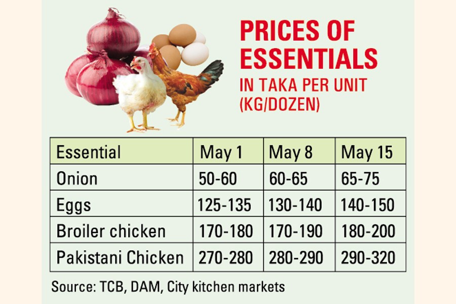 Prices of eggs, chicken, and onion increased further in the city markets last week ending on Thursday over the previous week, raising consumers' woes.