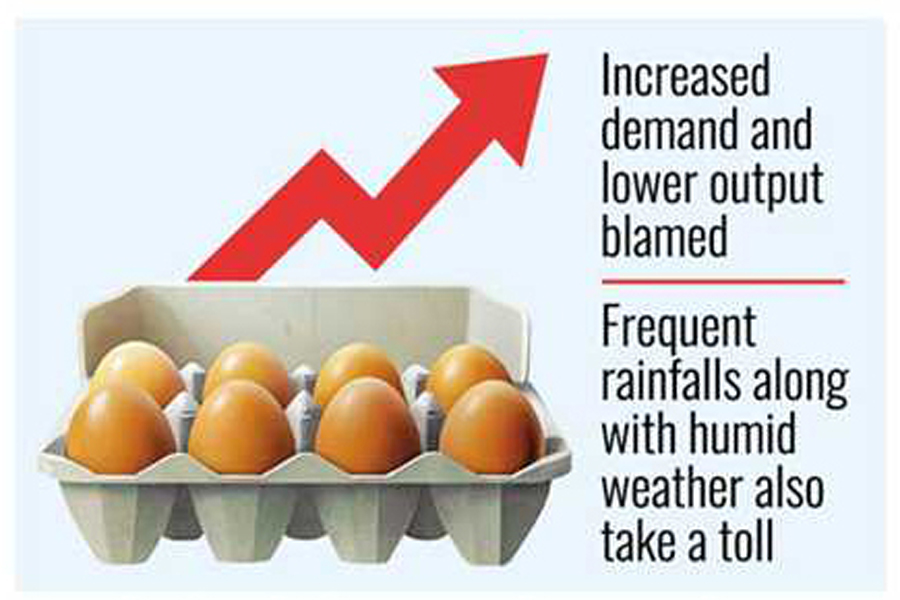 The Bangladesh Egg Producers Association said the overall egg outputs were affected in July-September period due to frequent rainfalls coupled with humid weather.