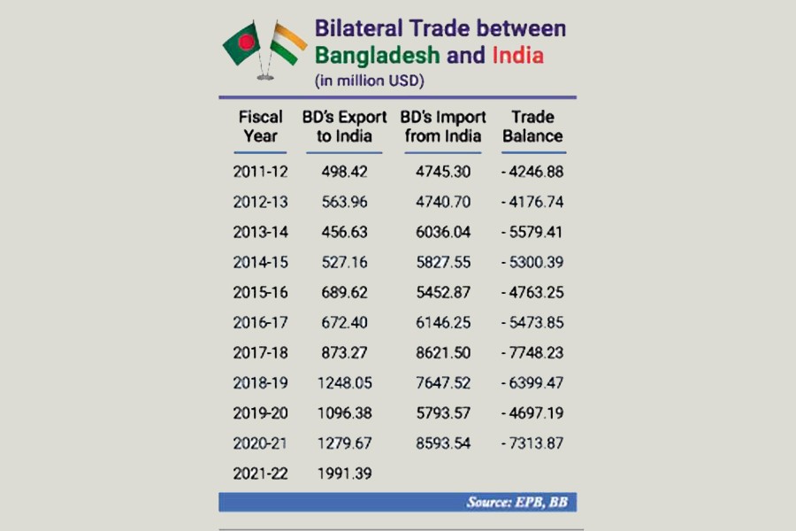 Bangladesh shipped goods worth US$1.27 billion to the neighbouring country in the fiscal year 2020-21 or FY '21, according to an Export Promotion Bureau (EPB) data.