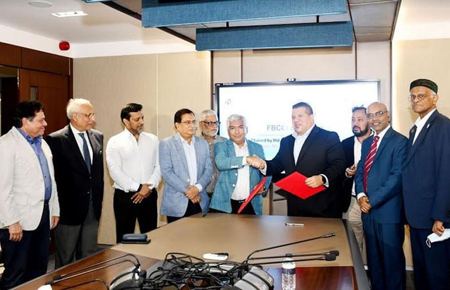 FBCCI President Md. Jashim Uddin and Faction Co-Founder Max Garza III signed the MoU on behalf of their respective organisations on Sunday evening at the Bengal Commercial Bank head office in Dhaka.