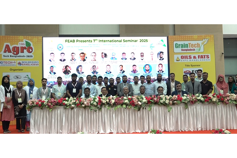The FEAB Foundation organised its 7th International Seminar on Thursday (November 20) at the International Convention City Bashundhara (ICCB) in Dhaka to promote food and agribusiness development, safe food production, and technology-driven innovation. The event coincided with the opening of the 13th GrainTech Bangladesh and 13th FoodTech Bangladesh, two three-day international fairs.