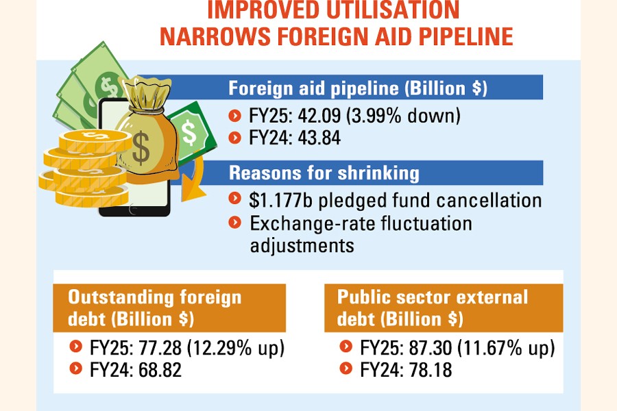 The pipeline of foreign aid - funds available for disbursement - narrowed to $42.09 billion in FY25, marking a 3.99-percent fall from the previous fiscal year to hit the lowest level since FY18, according to the latest Economic Relations Division (ERD) report.
