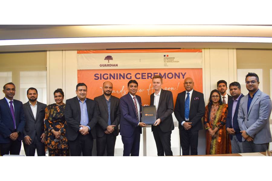 The agreement was recently signed in the presence of high officials of both the organizations. Sheikh Rakibul Karim, FCA, Additional Managing Director & Chief Executive Officer (Acting) of Guardian, and H. E. Marie Masdupuy, Ambassador of the Embassy of France in Bangladesh, signed this agreement on behalf of their respective concern, according to a press release.