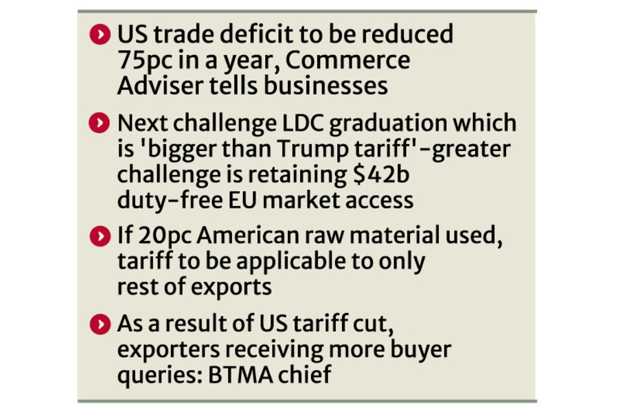 In response, Mr Rahman said if at least 20-percent US raw material is used, reciprocal tariff would be applicable to the rest of the exportable goods.