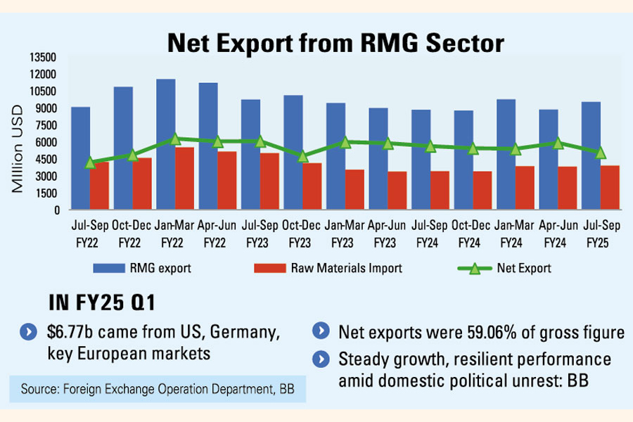 Moreover, in that quarter, net RMG exports - determined by subtracting the raw material import value from the export value - were $5.61 billion or 59.06 per cent of the gross figure, highlighting the sector's significant value addition despite global economic challenges.