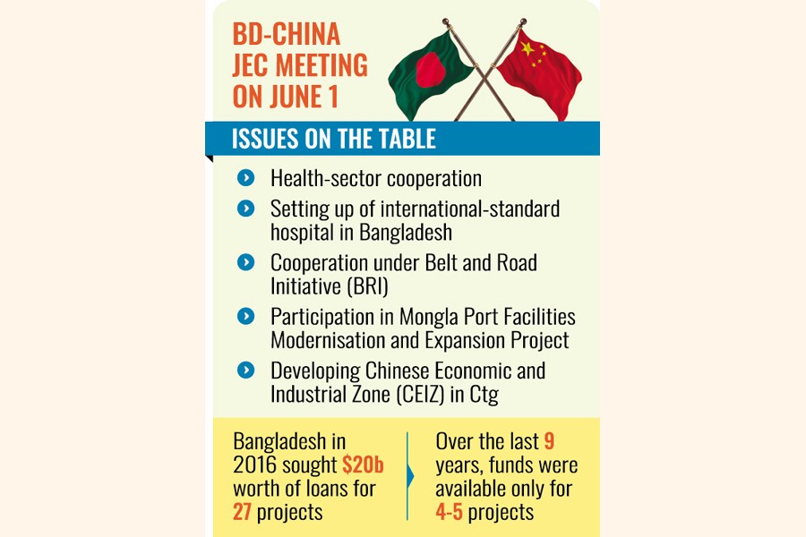 Bangladesh is set to sit for a Joint Economic Commission (JEC) meeting with China on June 1st wherefrom Dhaka expects larger-scale economic and investment cooperation.
