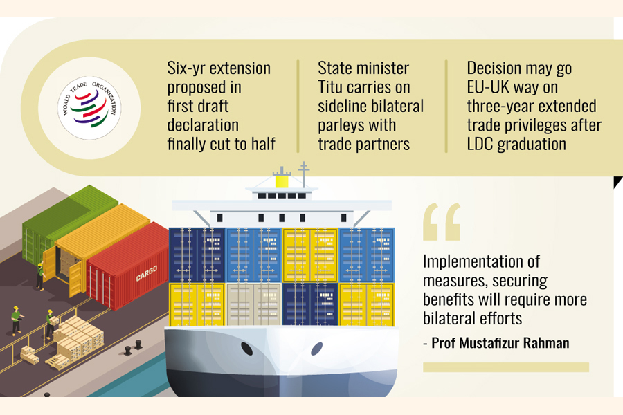 Regarding the extension of market access for graduating LDCs, Prof Mustafiz says it is likely that the ministerial decision will follow the stance taken by the European Union (EU) and the United Kingdom (UK).