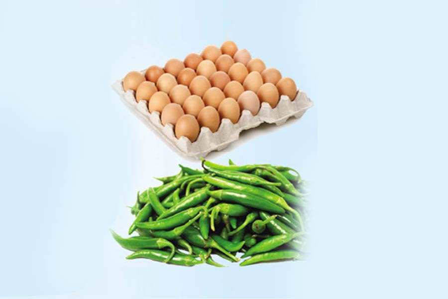 The prices of green chilli and eggs shot up further on Monday, reaching previous records.