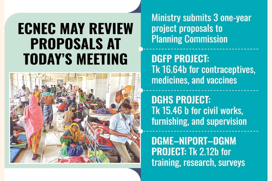 Proposals submitted by the Health Services Division and the Medical Education and Family Welfare Division have already been reviewed by the Planning Commission and are scheduled to be placed at the next meeting of the Executive Committee of the National Economic Council (ECNEC) today (Monday).