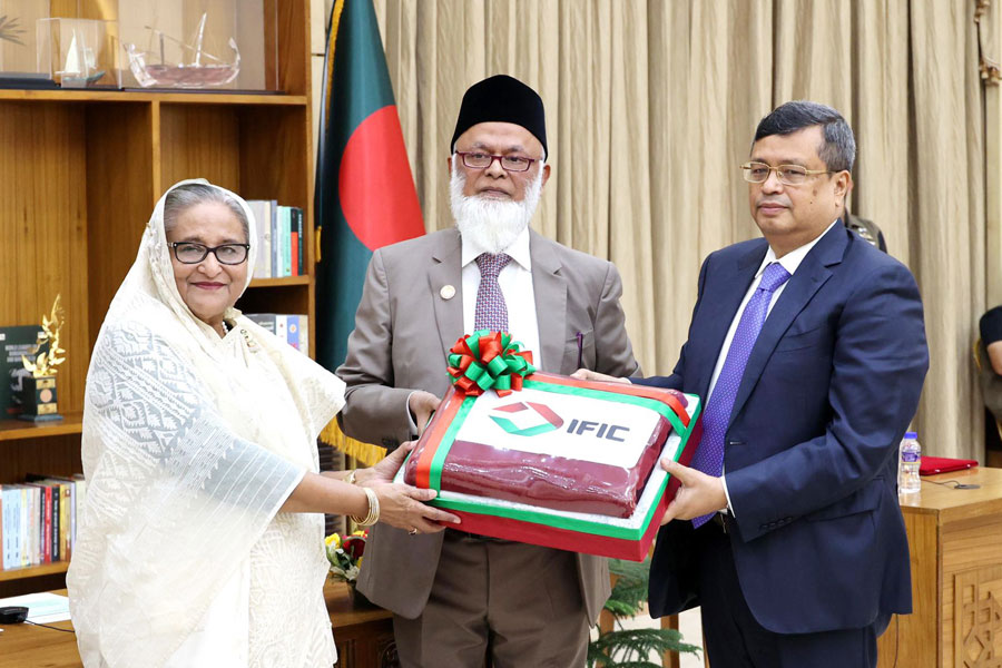 Managing Director and CEO of IFIC Bank, Shah A Sarwar handed over a token blanket to Honourable Prime Minister Sheikh Hasina at an event held at the Ganabhaban in the capital on Fariday.