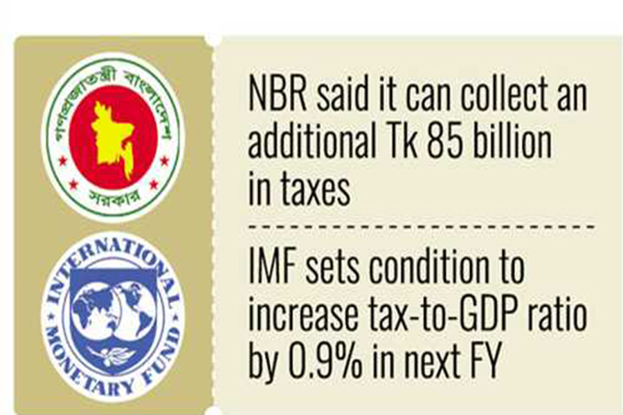 The IMF has set a condition to increase the tax-to-GDP ratio of Bangladesh by 0.9 per cent in next fiscal year.