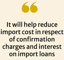 "It will also help reduce import cost in respect of confirmation charges and interest on import loans," the central banker explained.