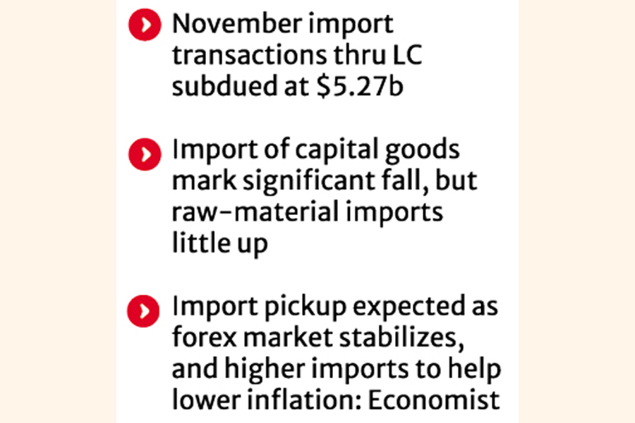 In the five months from July to November this year, the total value of LCs opened for import trade also declined slightly, by less than 1.0 per cent, amounting to $27.97 billion.