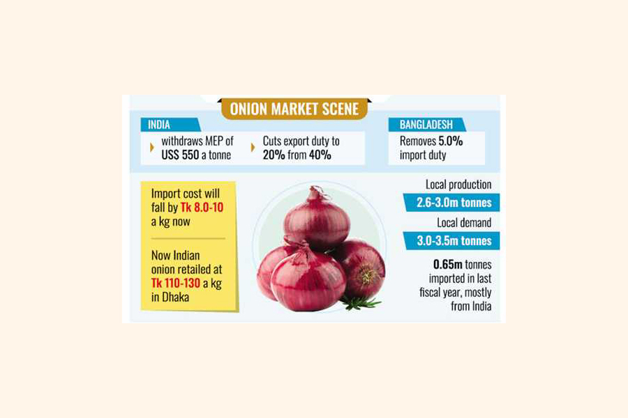 Hamidur Rahman, an onion trader in Dhaka, said the decision has come at a time when the Indian domestic onion price has almost surpassed their MEP.