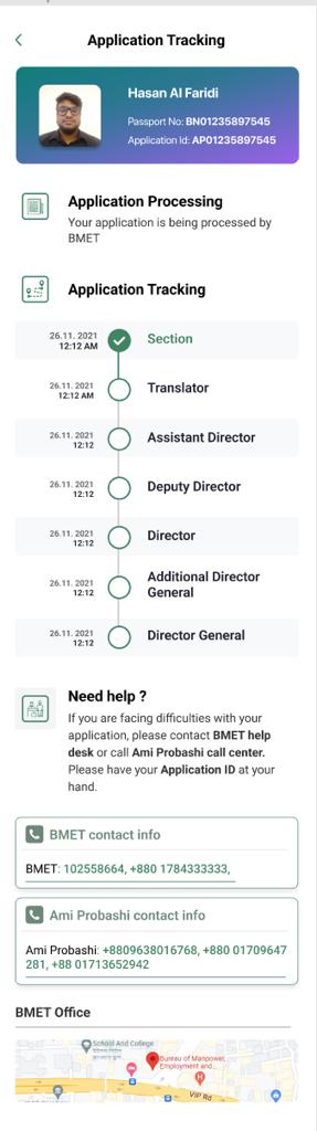 Once approved, aspiring migrants can instantly download the card to their phone or print a PDF version on paper. They can access and download their card both on their app, or the Ami probashi website. This streamlined approach saves precious time and resources while eliminating the need for laminated card printing. It empowers BMET approval personnel to expedite file reviews, enables candidates to access their approved files with ease, and allows for convenient file tracking and follow-ups when necessary.