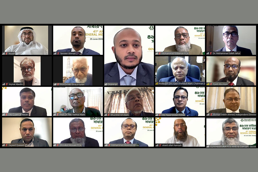 Yousif Abdullah Al-Rajhi of KSA and Dr Tanveer Ahmad, Vice Chairmen of the bank, other directors, Mohammed Monirul Moula, Managing Director, Maolana Obaid Ullah Hamzah, Chairman of Shariah Supervisory Committee, J Q M Habibullah, FCS, Additional Managing Director and Company Secretary along with foreign institutional shareholders and a significant number of local shareholders, participated in the meeting.