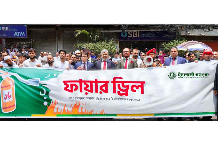 Islami Bank Bangladesh PLC arranged a fire drill for the bank’s officials and employees focusing on fire prevention, extinguishing, rescue, and emergency exit on Wednesday at Islami Bank Tower, according to a press release.