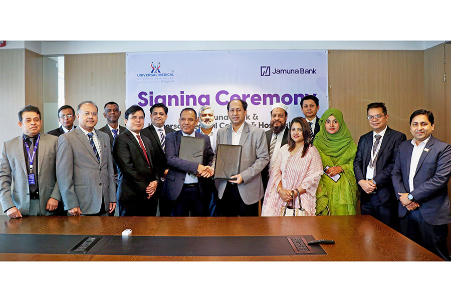 The agreement was formally signed by Mirza Elias Uddin Ahmed, Managing Director & CEO of Jamuna Bank PLC, and Dr Ashish Kumar Chakraborty, Managing Director of Universal Medical College & Hospital Limited, in the presence of senior officials from both organisations, according to a press release.