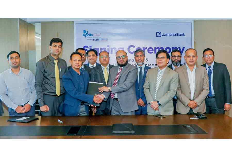 Jamuna Bank PLC. has signed a memorandum of understanding (MoU) with Apollo Clinic Licensee: JMI Specialized Hospital Ltd. on Tuesday at Jamuna Bank Tower, Dhaka.