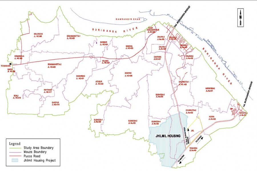 Jhilmil Residential is situated on the other bank of the river Buriganga on about 381 acres of land for a projected population of 200,000.