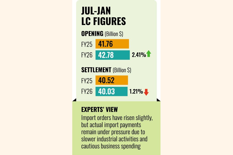 Economists say the divergence between LC openings and settlements indicates that while import orders have increased slightly, actual import payments remain under pressure due to slower industrial activities and cautious business spending.