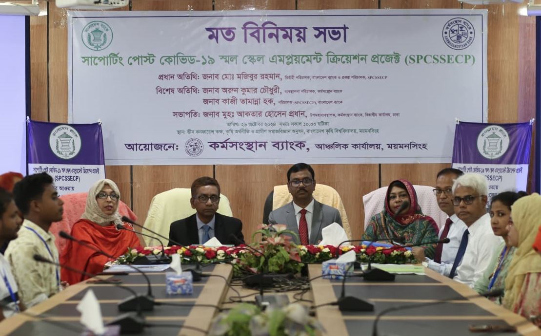 Under the SPCSSECP program jointly organized by the Karmasangsthan Bank and Bangladesh Bank, an exchange meeting was held on 26 October 2024 at the Dean's Conference Room, Faculty of Agricultural Economics and Rural Sociology, Bangladesh Agricultural University, Mymensingh with the participation of entrepreneurs from Mymensingh region.
