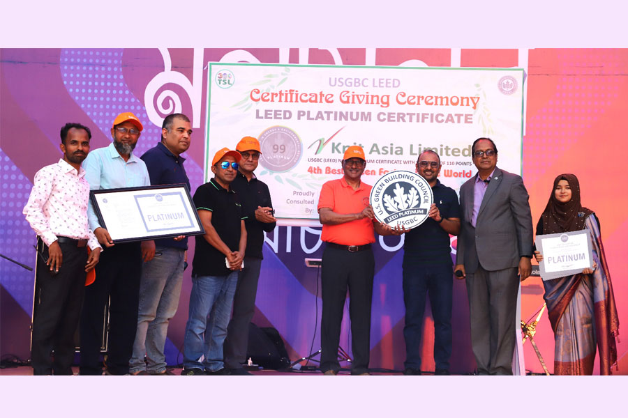 Knit Asia Limited, a garment manufacturing facility in Ratanpur, Shafipur, has earned LEED (Leadership in Energy and Environment Design) Platinum Certification by the United States Green Building Council (USGBC).