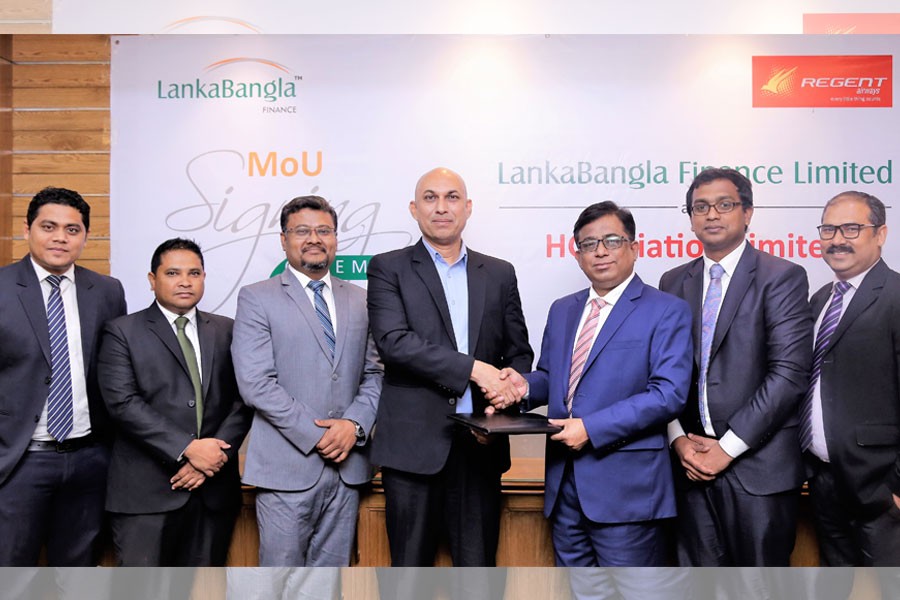 Credit card holders of LankaBangla Finance Limited (LBFL) will now enjoy EMI facility up to 6 months at zero per cent interest under ezypay scheme to buy air tickets and holiday packages from Regent Airways.