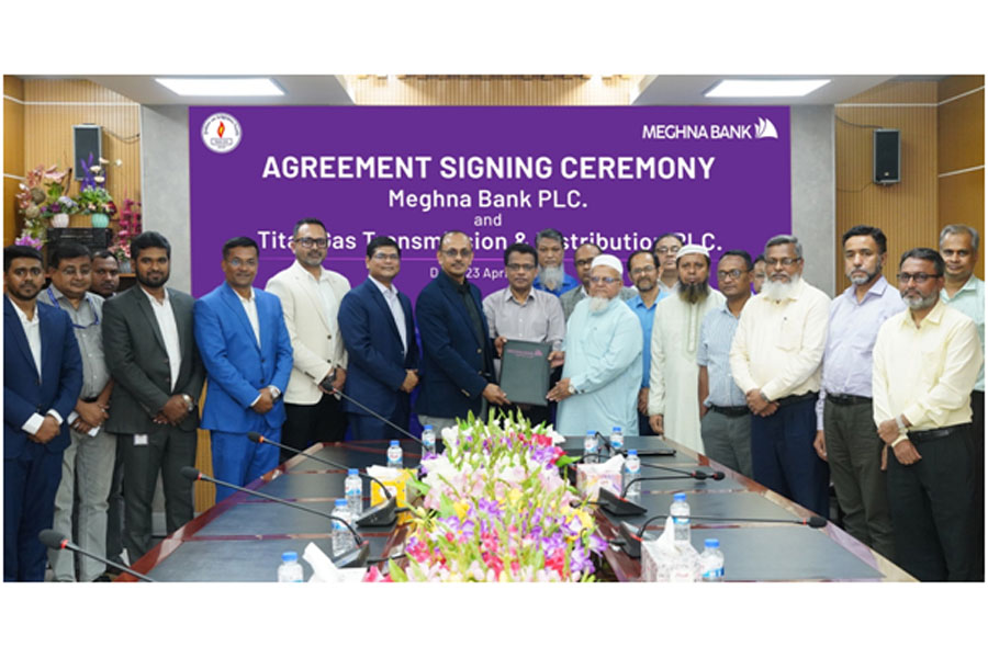 Syed Mizanur Rahman, managing director of Meghna Bank PLC, and Md Lutful Haider Masum, company secretary of Titas Gas Transmission and Distribution PLC, signed the agreement on behalf of their respective organisations.