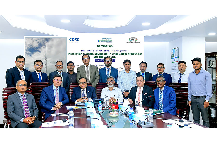 Mercantile Bank PLC and CDRC jointly arranged a seminar on Sunday (17.08.2025) at the bank’s Head Office on 10 units Lightning Arrester installed by RDA in char & haor area donated from special CSR Fund by the bank.