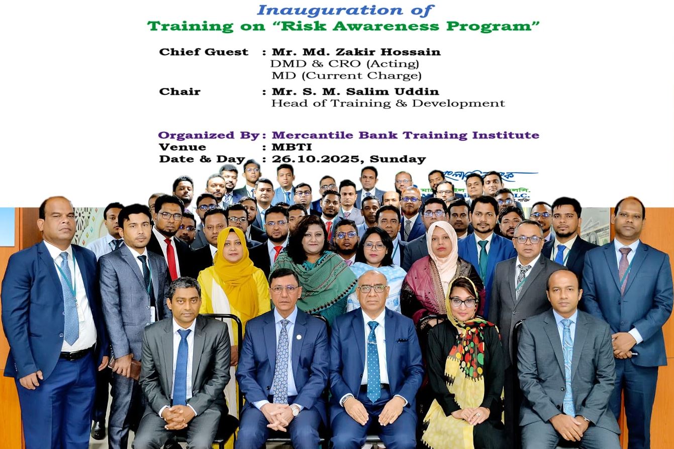 Mercantile Bank Training Institute (MBTI) organized a day-long “Training on Risk Awareness” aiming to enhance employees’ understanding of risk management and promote a culture of risk awareness across all levels of the bank on 26 October 2025.