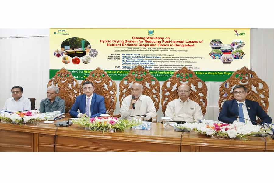 Mercantile Bank PLC has funded an agricultural research project at Bangladesh Agricultural University (BAU) titled “Development of a Hybrid Dryer System to Reduce Crop and Fish Post-Harvest Losses,” which concluded on Saturday with a formal workshop.