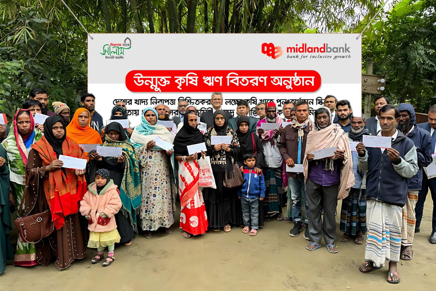 A total loan amount of Tk 10 million (1 crore) was sanctioned by Midland Bank for disbursing among 100 farmers, according to a media release.