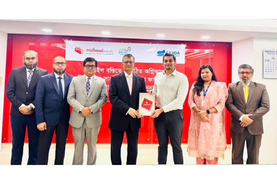 Among others, Farhin Ahmed Twinkle, Coordinator, Partnership & Fundraising of Sajida Foundation; Md. Rashed Akter, Head of Retail Distribution & Chief Bancassurance Officer; Didarul Islam, CFO; Md. Bajlur Rahman Khan, Head of CRM and Head of Sustainable Finance Unit of Midland Bank, were also present at the handover ceremony.