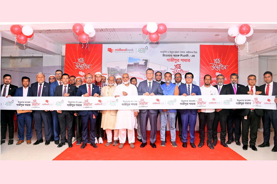 Midland Bank PLC (MDB) inaugurated its Gazipur Branch at Smart Plaza, Holdin No: 154/1, Joydebpur Bazar Road, Ward No: 26, Gazipur City Corporation, P/S: Gazipur Sadar, Dist: Gazipur on February 12, 2025.