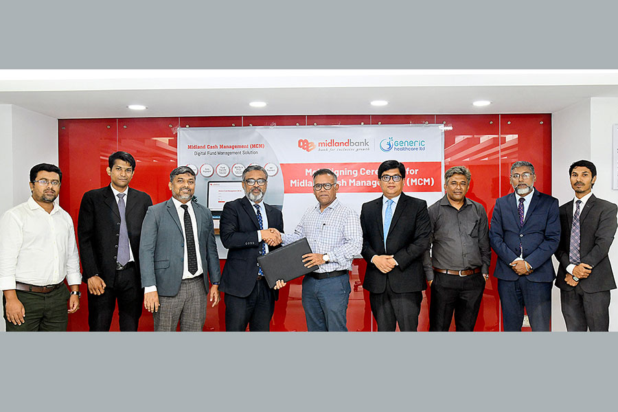 Mr. Mohd Javed Tarek Khan, Head of Institutional Banking Division and Md. Rashed Akter, Head of Retail Distribution Division, Midland Bank PLC and Dr. Faisal Rahman, Founder, MD & CEO, Generic Healthcare Ltd signed the MoU on behalf of their respective organisations.