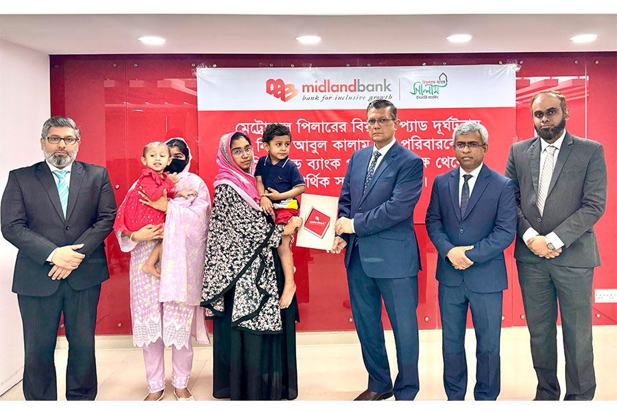 Midland Bank Family provided financial assistance of Tk 15 lac to the family of late Abul Kalam, who passed away in the recent metro rail tragedy in Farmgate area, Dhaka, on October 27, 2025.