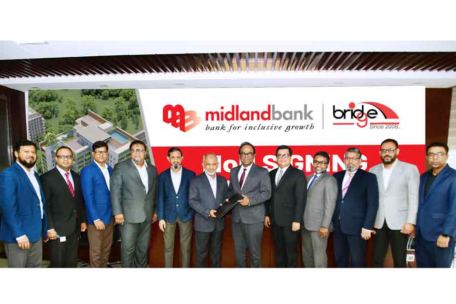 The MoU signing ceremony was held at the Bridge Holding’s Head Office in Gulshan-2, Dhaka. Mr. Md. Zahid Hossain, Managing Director (Current Charge) of Midland Bank and Mr. Md. Harun-ur Rashid, Chairman, Bridge Holdings Ltd., signed the agreement on behalf of their respective organisations, according to a press release.