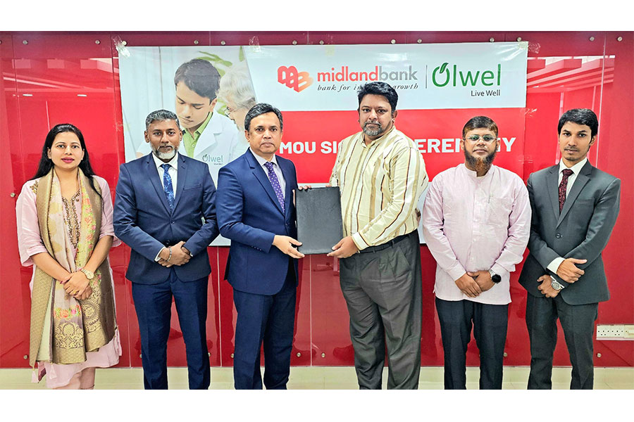 Mr. Md. Nazmul Huda Sarkar, Chief Technology Officer of Midland Bank, and Dr. Feroz Salahuddin, Director, Medical Operation of Olwel, signed the agreement on behalf of their respective organizations.